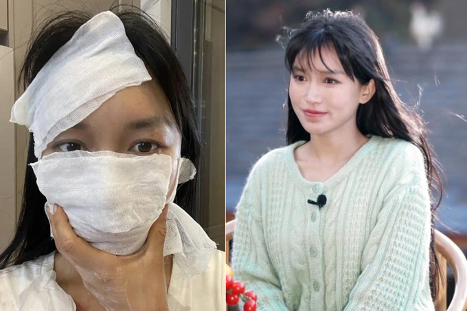 Tử Thất bị dị ứng khi làm đồ sơn mài năm 2023 và ở buổi phỏng vấn sau khi tái xuất. Ảnh: Xinhua
