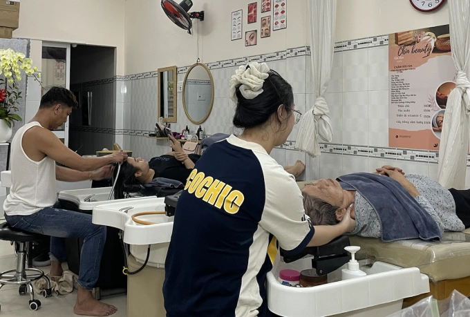 Ghi nhận của VnExpress,tại các khu dân cư ở Phường Bến Thành,An Khánh hay khu vực đường Phú Định từ sau 20 tháng Chạp,nhiều tiệm tóc,nail bắt đầu dồn lịch sang buổi tối muộn. Sau 22h,khách vẫn tiếp tục đến,chủ yếu để làm các dịch vụ mất nhiều thời gian như uốn,nhuộm tóc,làm nail trọn gói.