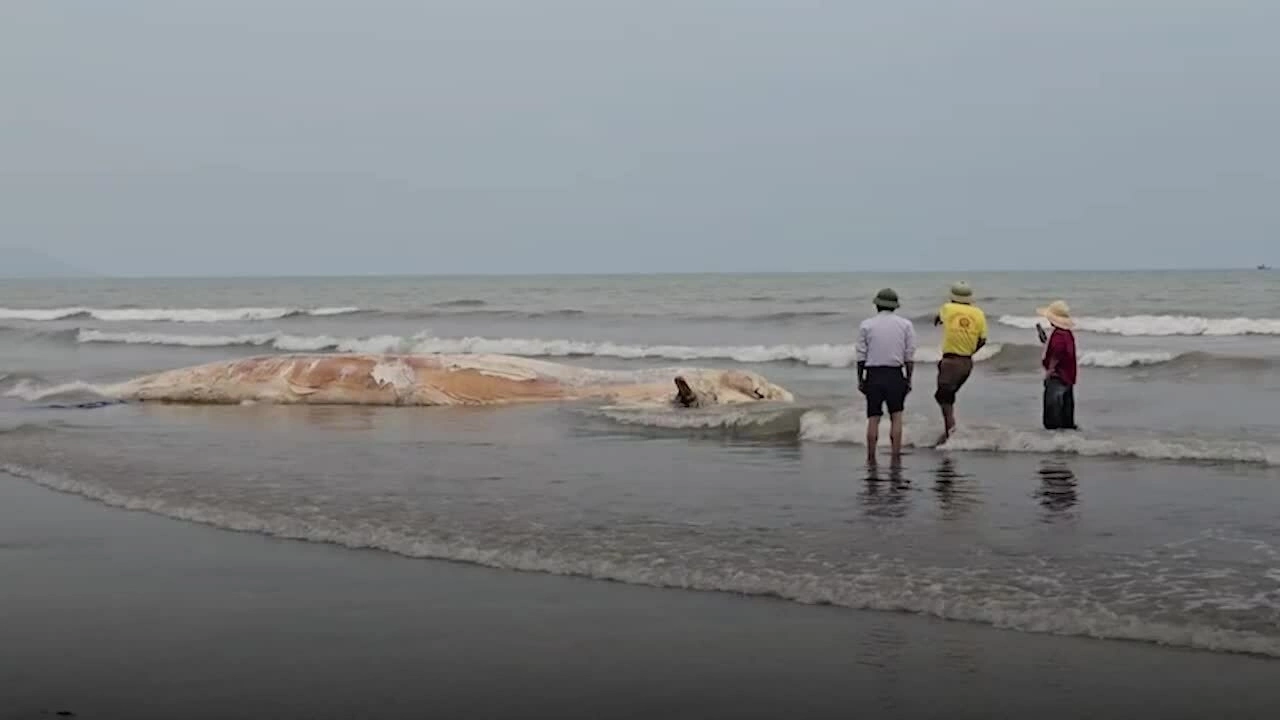 Xác cá voi nặng hơn 5 dạt bờ biển xã Hải Châu,sáng 20/3. Video: Hùng Lê