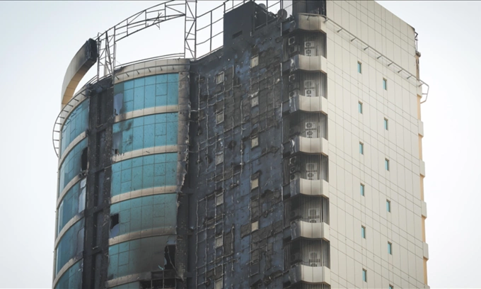 Một khách sạn bị hư hại do trúng UAV tại Bahrain hôm 1/3. Ảnh: Anadolu