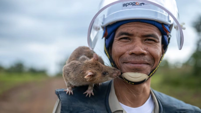 Một con chuột chuyên dò tìm bom mìn tại Campuchia. Ảnh: Apopo
